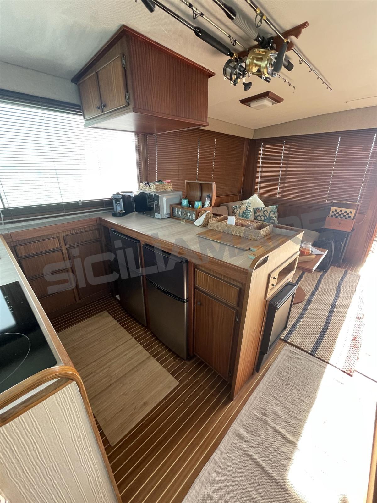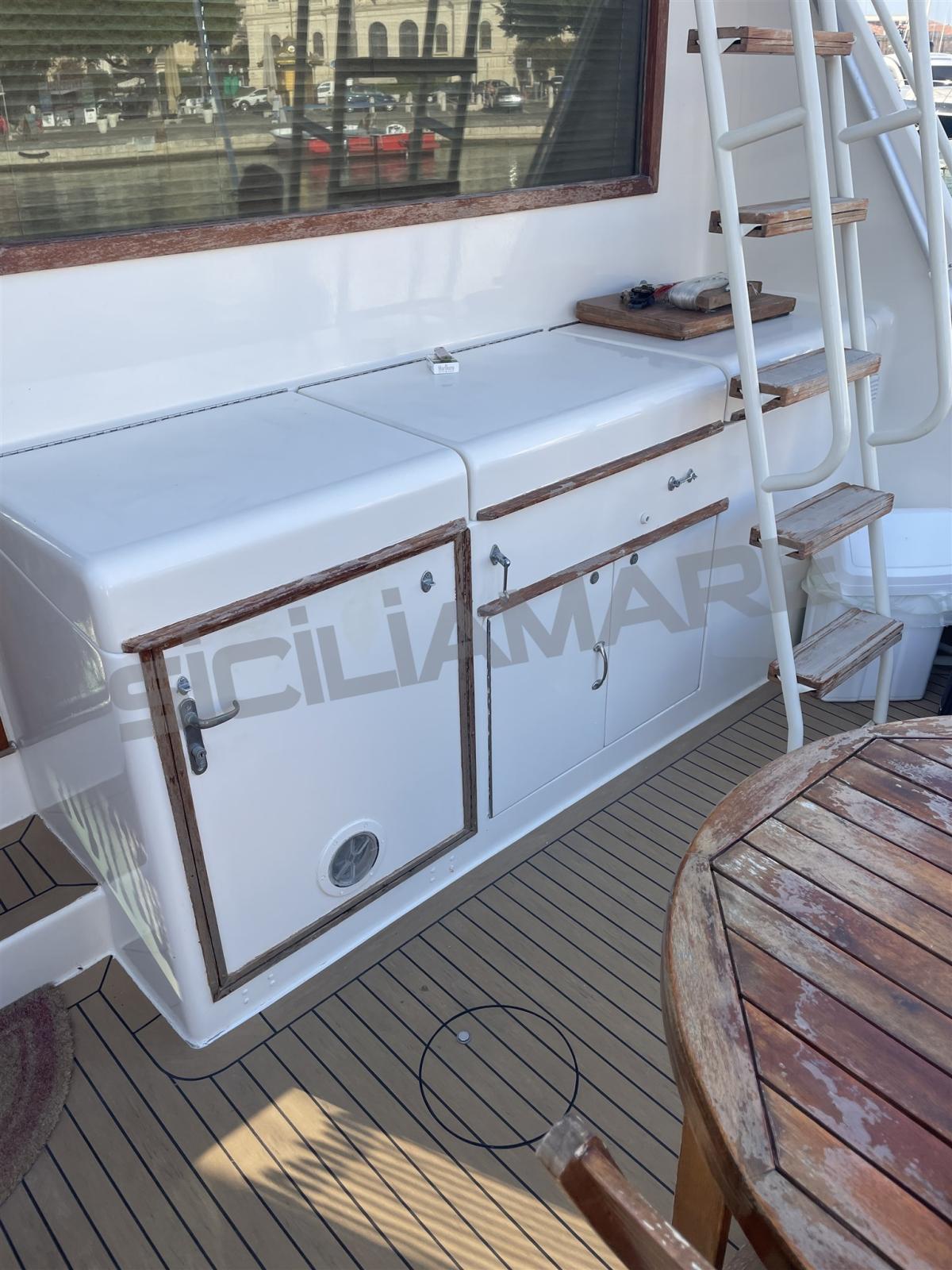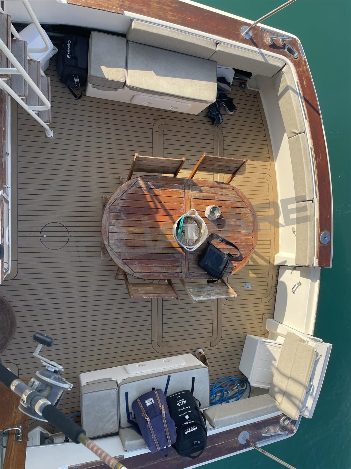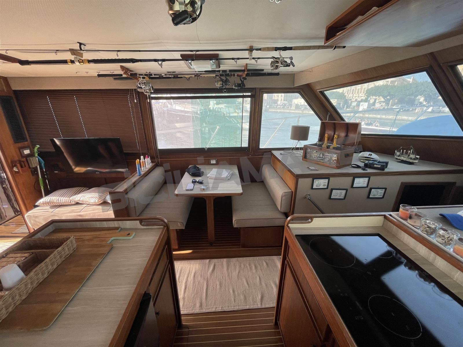 Alarme gaz, Alarme moteur, Alarme de pompe de cale, Ligne d'arbre de rechange, Eau sous pression, canoë, Douche de cockpit, 2 Hélice de rechange, Phares fixes arrière, Flaps hydrauliques, Hard top, Extincteur(s) fixe(s), Compresseur de plongée, Lavabo dans le cockpit, Éclairage de courtoisie, Passerelle, Plateforme arrière, Porte latérale, Cockpit en teck, Prise de quai, Connexion eau sous pression à quai, Guindeau électrique, Echelle de bain, table de cockpit, Table pliante de salon, Corne, T-Top, Winch électrique avant.