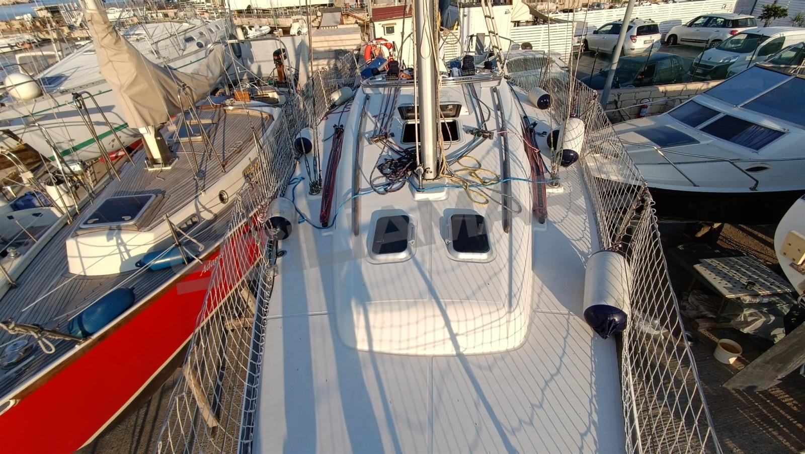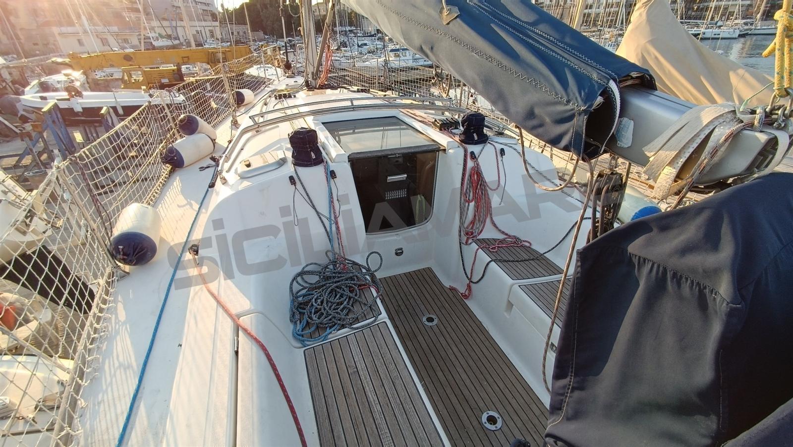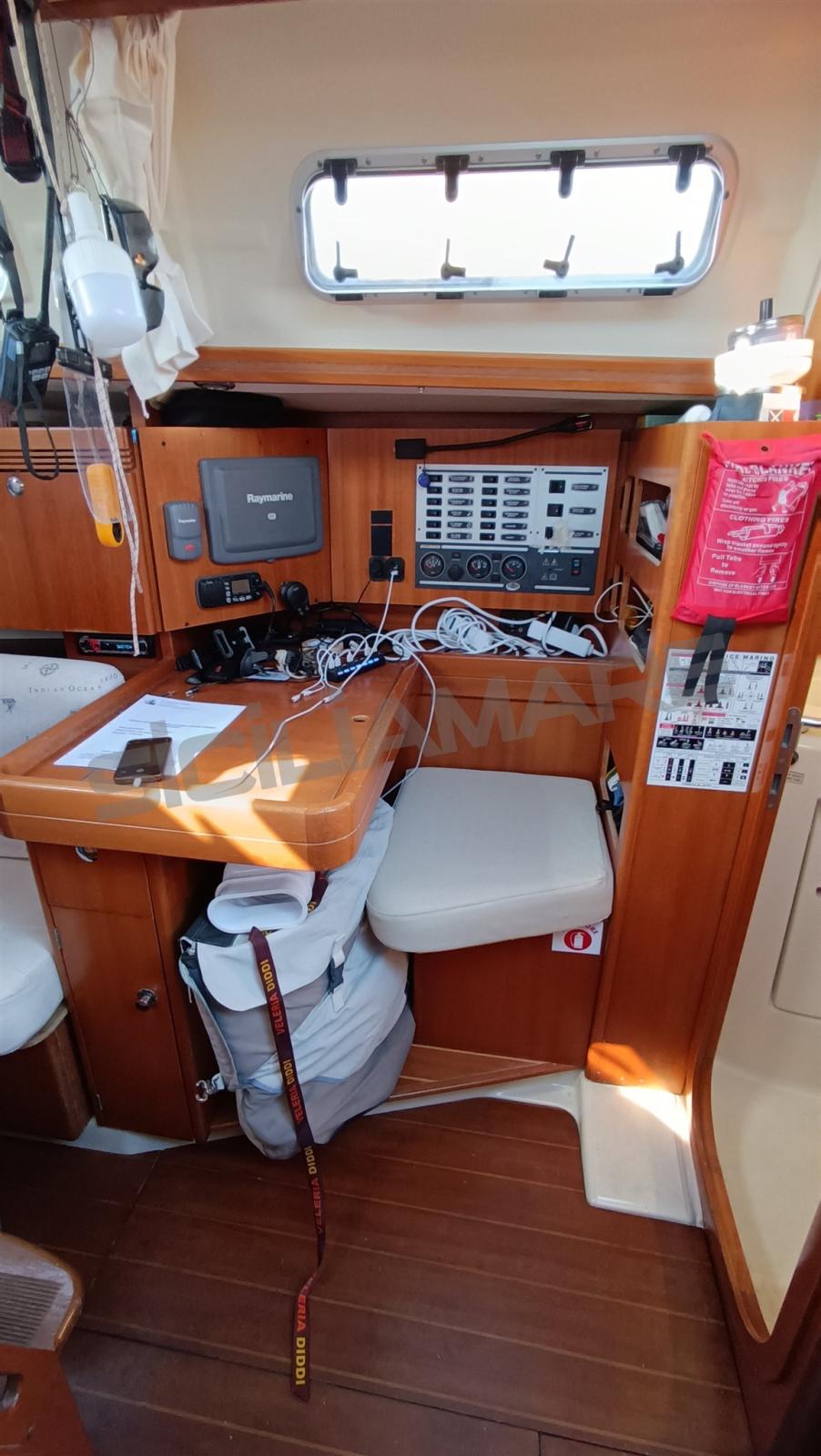 Alarme moteur, Alarme de pompe de cale, Eau sous pression, Douche de cockpit, Phares fixes arrière, Éclairage de courtoisie, Moteur d'annexe, Panneau solaire, Passerelle, Pompe de cale automatique, Pompe de cale manuelle, Cockpit en teck, Prise de quai, Répétiteur électronique, Guindeau électrique, Gréement Rod, Echelle de bain, Chaise support HB, table de cockpit, Table pliante de salon, Annexe, Corne, 4 Winch, Windex.