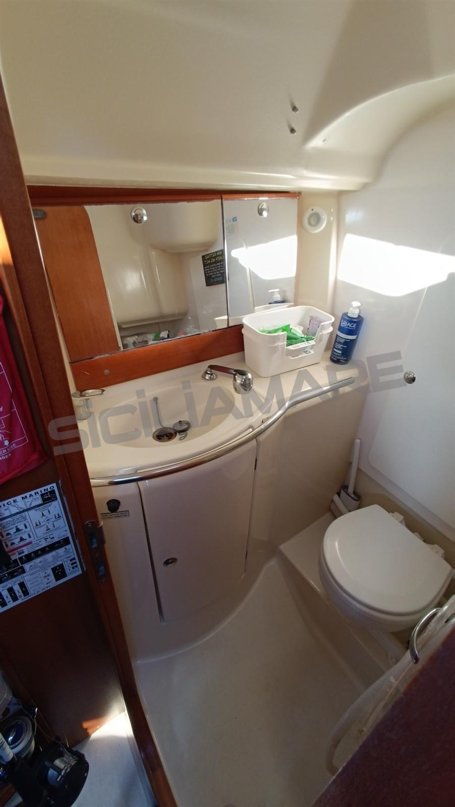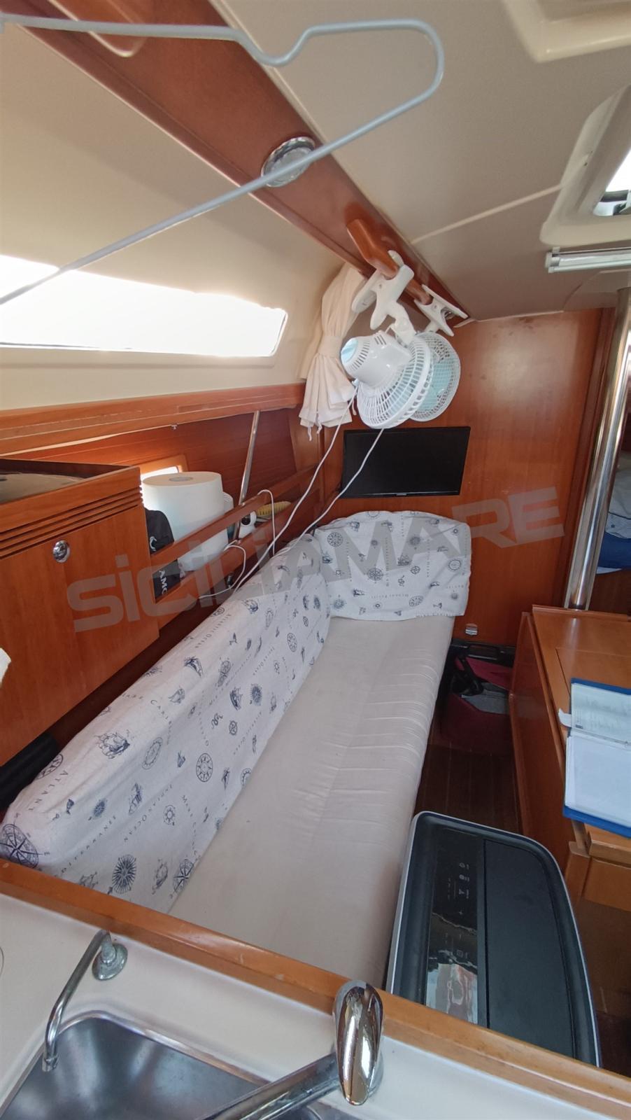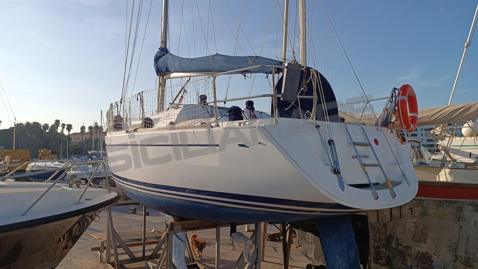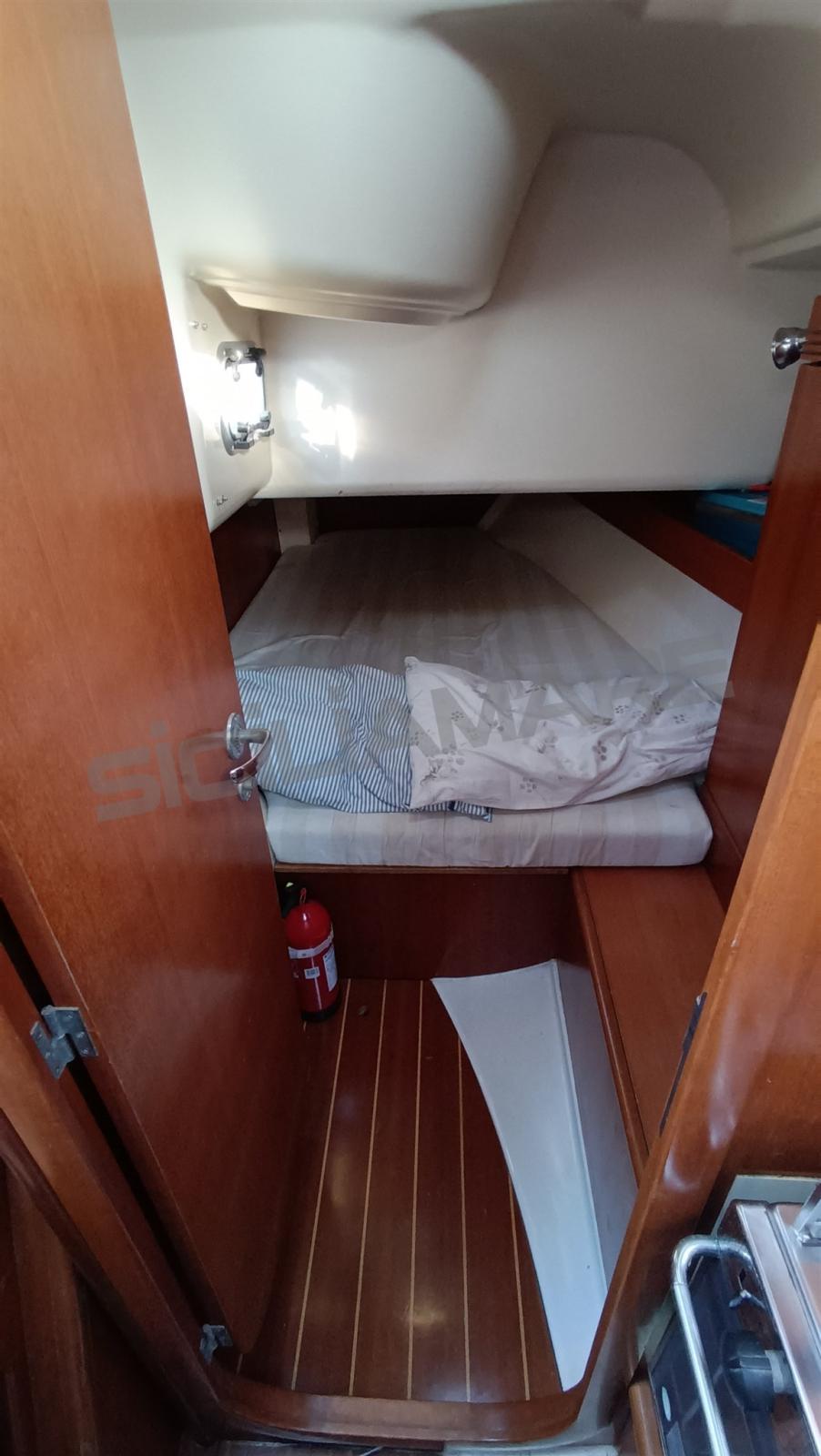 Alarme moteur, Alarme de pompe de cale, Eau sous pression, Douche de cockpit, Phares fixes arrière, Éclairage de courtoisie, Moteur d'annexe, Panneau solaire, Passerelle, Pompe de cale automatique, Pompe de cale manuelle, Cockpit en teck, Prise de quai, Répétiteur électronique, Guindeau électrique, Gréement Rod, Echelle de bain, Chaise support HB, table de cockpit, Table pliante de salon, Annexe, Corne, 4 Winch, Windex.