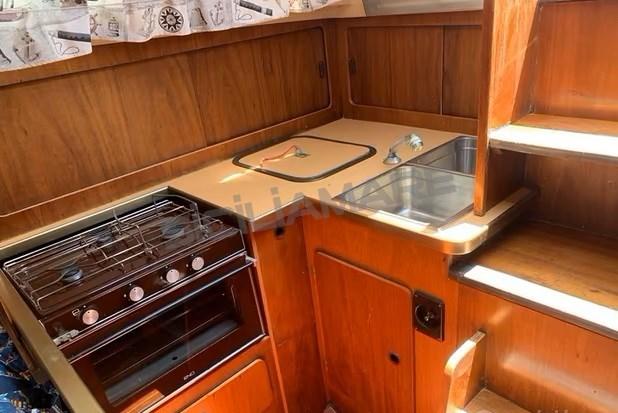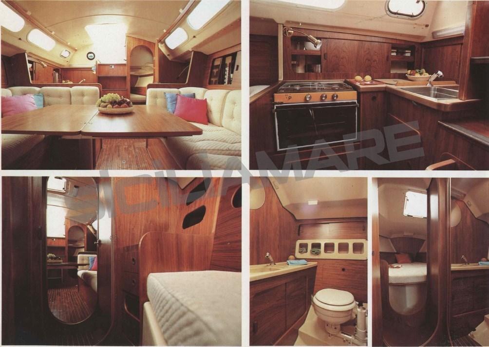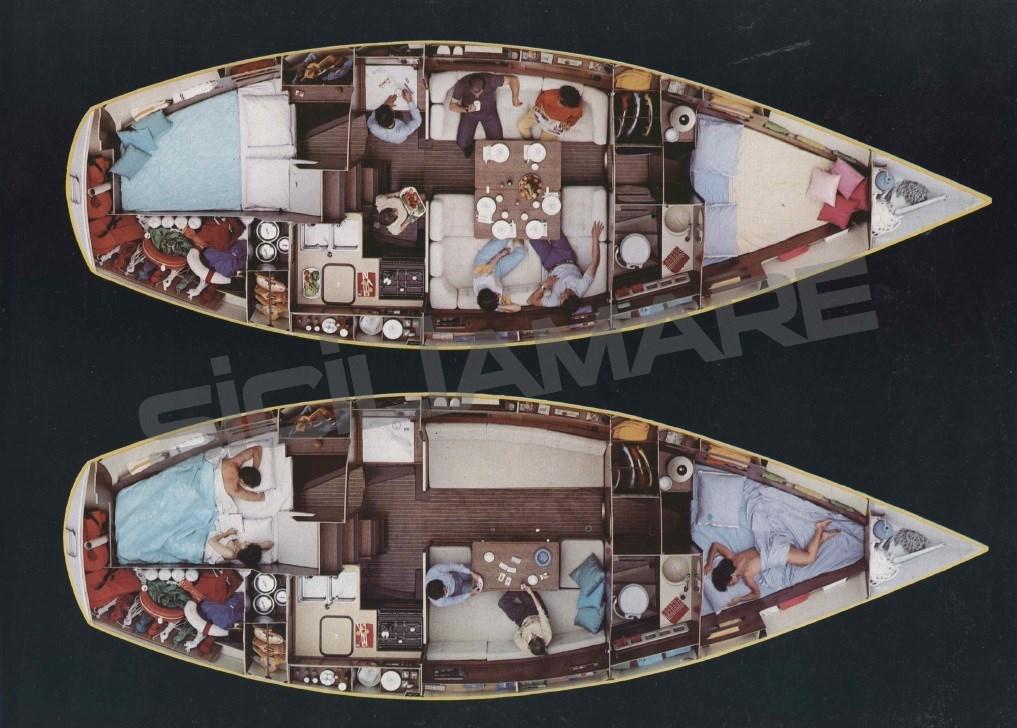 Eau sous pression, Douche de cockpit, Passerelle, Plateforme arrière (aggiunta), Pompe de cale manuelle, Prise de quai, Guindeau électrique, Gréement monotoron, Echelle de bain, 4 Winch.