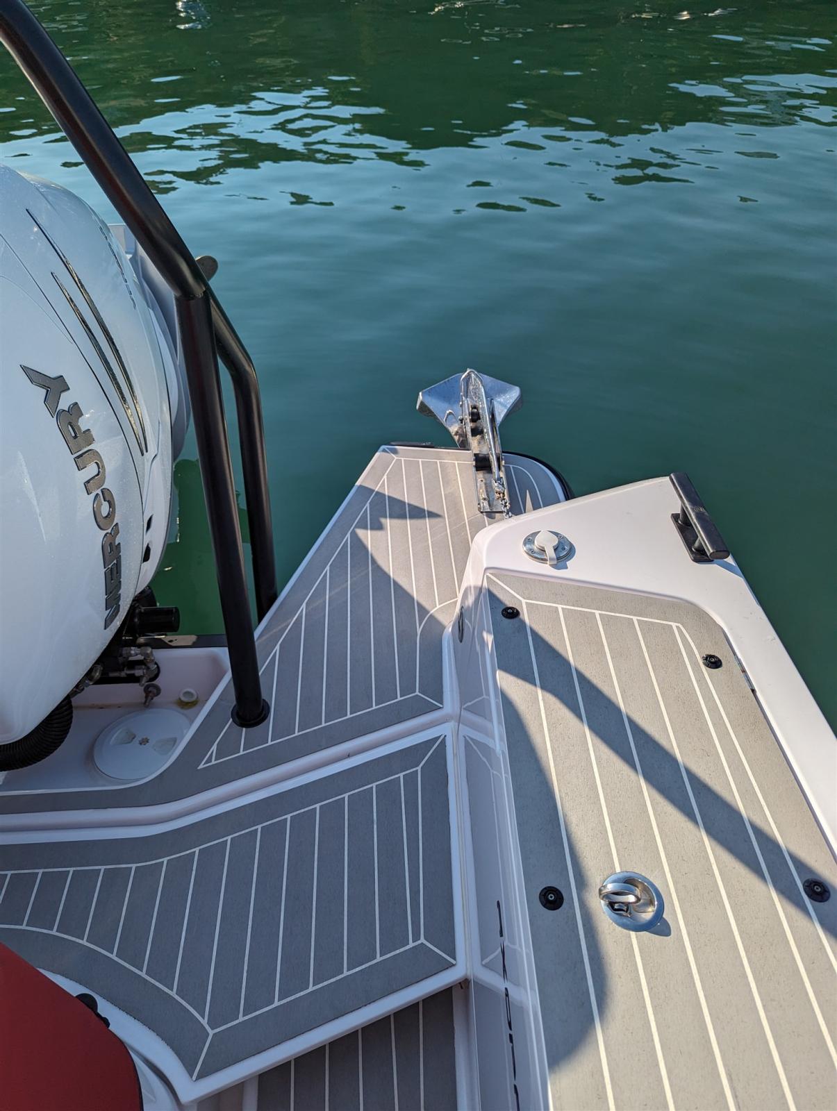 Moteurs blancs - Barres de rangement sur le toit - Main courante latérale - Bâton de ski nautique - Échelle de bain supplémentaire avec mains courantes hautes - Housse de cabine arrière - Coussin de coffre à ancre avant - Mise à niveau du système stéréo.
